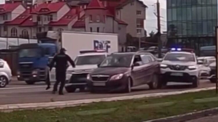 Побил машины, наехал на полицейского. На трассе в Тернополе ловили пьяного военкома. Видео