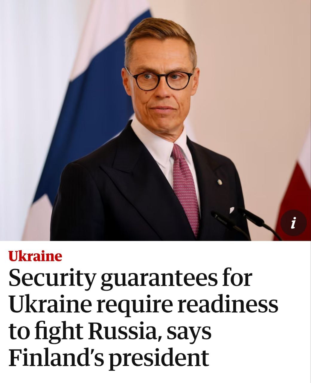 При этом отметим, что кроме Стубба никто из других европейских лидеров не заявлял о готовности дать гарантии безопасности Украине, которые бы обязывали страны Европы вступать в войну с Россией в случае нового вторжения в Украину.