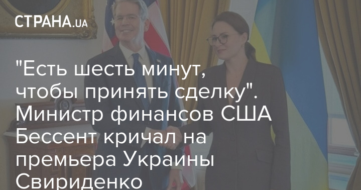 "Есть шесть минут, чтобы принять сделку". Министр финансов США Бессент кричал на премьера Украины Свириденко
