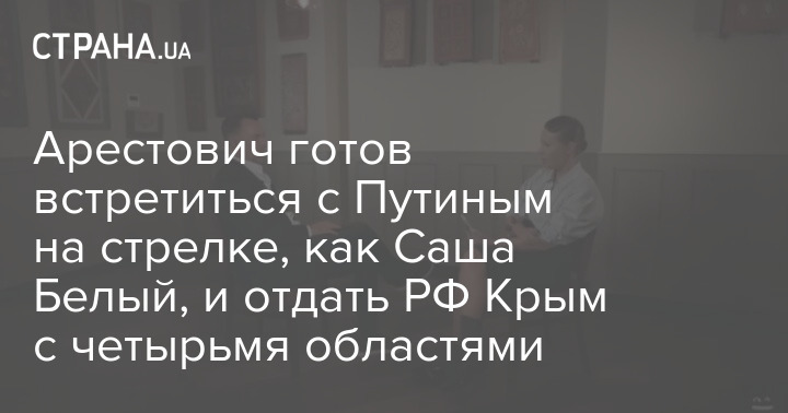 Бывший советник Офиса президента Украины Алексей Арестович заявил, что в случае избрания президентом Украины отдаст РФ четыре области и Крым ради завершения войны, не признавая их при этом юридически российскими, а также обеспечит права русскоязычных и Украинской православной церкви.