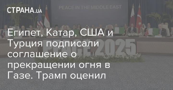 Лидеры Египта, Катара, США и Турции подписали итоговое соглашение о прекращении огня в Газе на "саммите мира" в Шарм-эш-Шейхе. Среди подписующих оказались президент Египта Абдель Фаттах ас-Сиси, эмир Катара Тамим бин Хамад Аль Тани, президент США Дональд Трамп и глава Турции Реджеп Тайип Эрдоган.