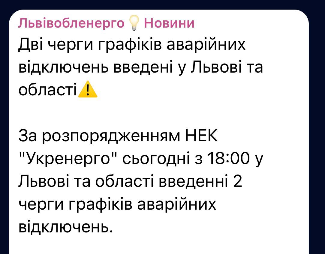 18.13 Во Львовской области также введены экстренные отключения света, сообщает "Львовоблэнерго".