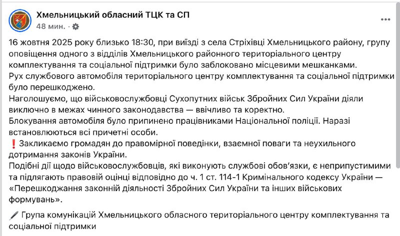 12:22 Хмельницкий ТЦК прокомментировал конфликт своих сотрудников с жителями села Стреховцы.