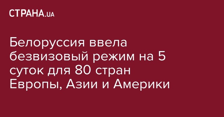 Белоруссия ввела безвизовый режим на 5 суток для 80 стран Европы, Азии и Америки