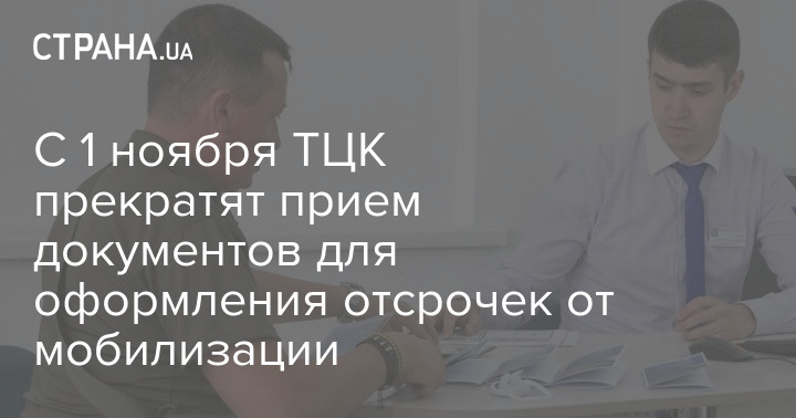 С 1 ноября ТЦК прекратят прием документов для оформления отсрочек от мобилизации