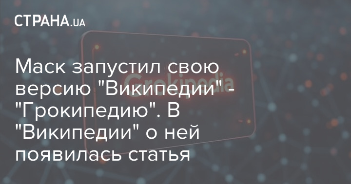 "Grokipedia — это онлайн-энциклопедия на основе искусственного интеллекта, разработанная компанией xAI, основанной Илоном Маском. Запущена 27 октября 2025 года. Маск представил Grokipedia как альтернативу "Википедии", которая, по его словам, должна "очистить её от пропаганды", - сказано в статье.