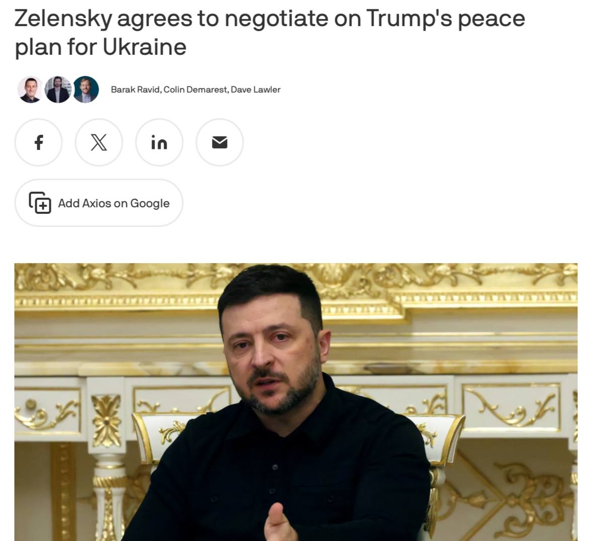 "Вместо того чтобы категорически отказаться от него, Зеленский согласился на переговоры, и его офис заявил, что он планирует обсудить это с президентом Трампом в ближайшие дни", – пишет издание.