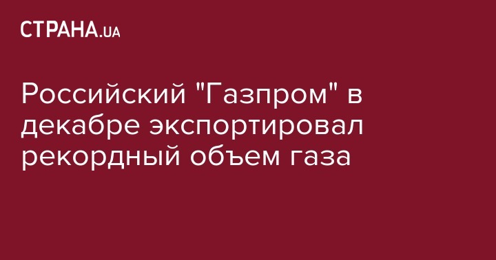 Российский "Газпром" в декабре экспортировал рекордный объем газа