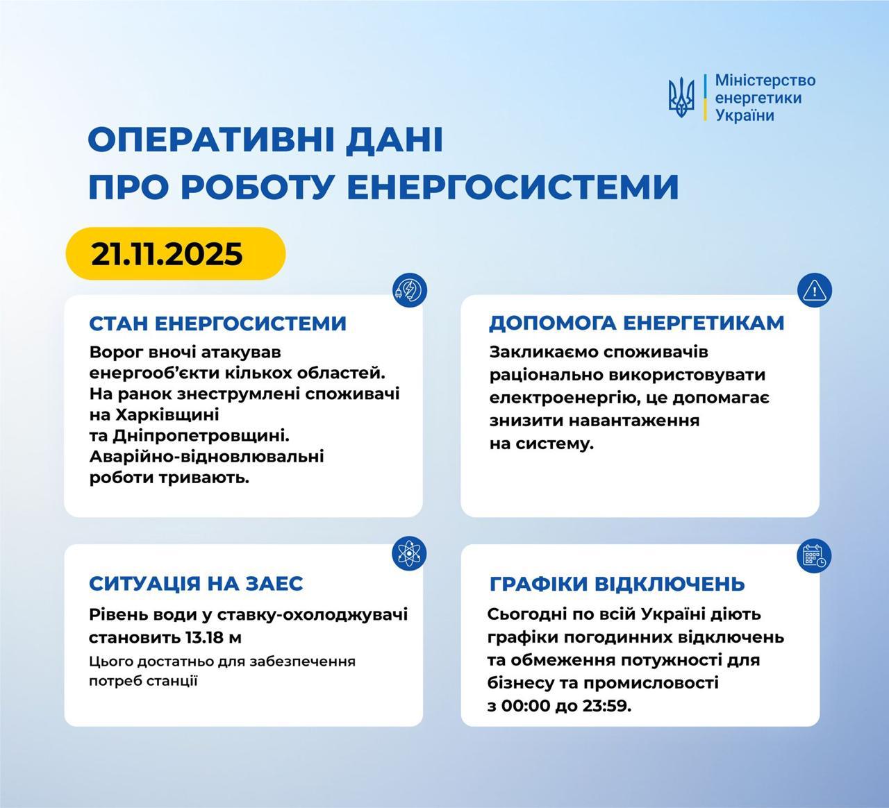 10:34 О прилетах по энергетике в нескольких областях сообщает Минэнерго. В результате на утро обесточены потребители в Харьковской и Днепропетровской областях.