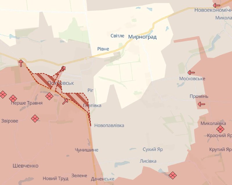 На карте Deep State отображено существенное продвижение РФ в Покровске, но пока не полная его потеря.