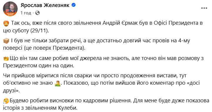 По данным источников нардепа, в субботу, 29 ноября, Андрей Ермак приехал в Офис президента, не только чтобы забрать вещи.