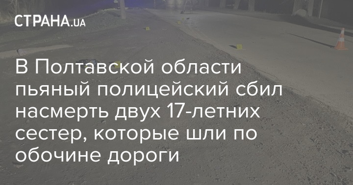 "Вечером 30 ноября в г. Карловка сотрудник полиции за рулем собственного автомобиля Hyundai Tucson совершил наезд на двух 17-летних сестер, которые шли по обочине дороги. От полученных травм оба ребенка скончались на месте происшествия. Правоохранитель с места ДТП скрылся, но вскоре вернулся. По предварительным данным, мужчина имел признаки алкогольного опьянения. В настоящее время он задержан в порядке ст. 208 УПК Украины", - сказано в публикации.