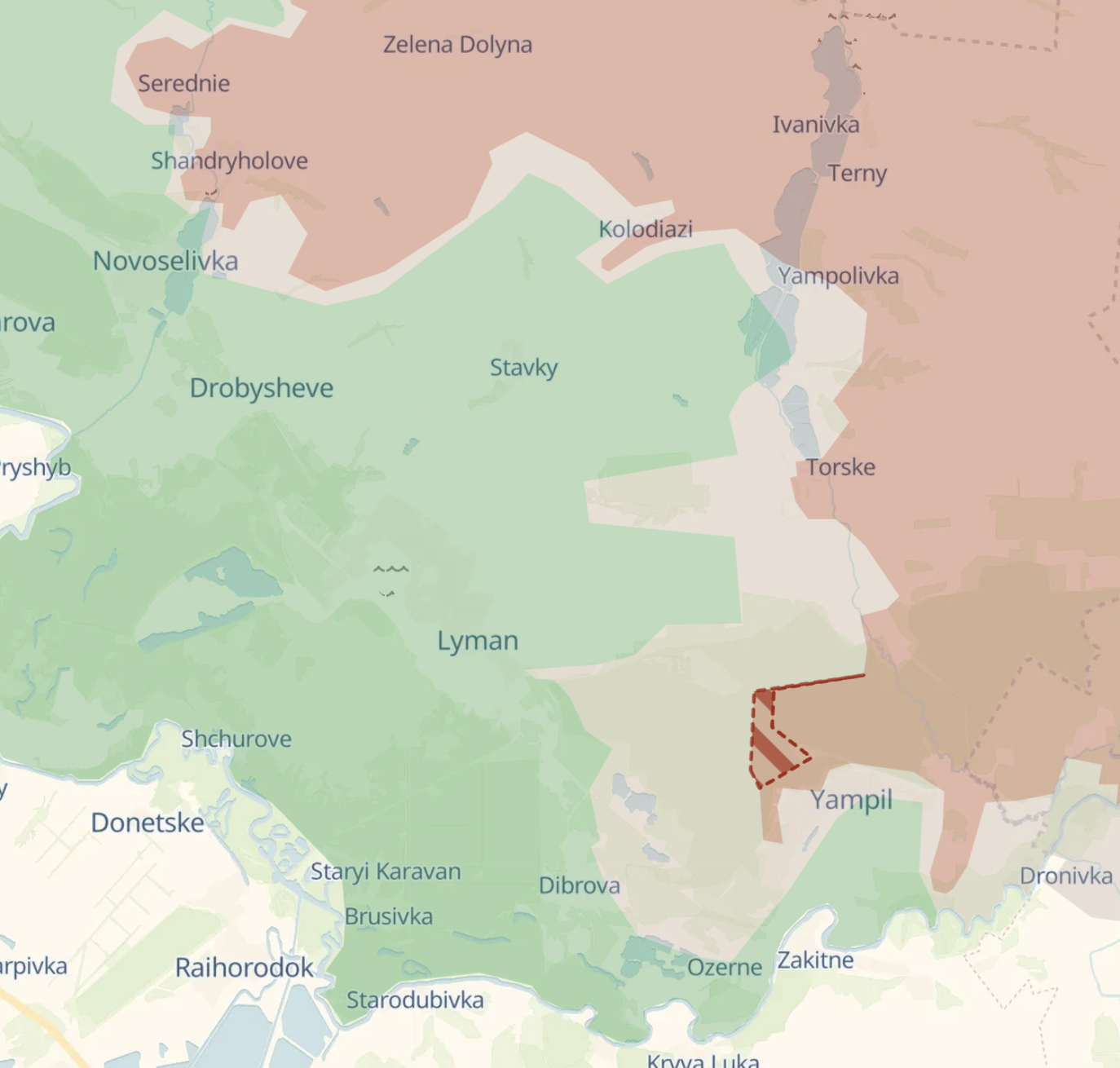 Также российские войска продвинулись в районе Ямполя на Лиманском направлении, где у них и вчера были крупные территориальные приращения.