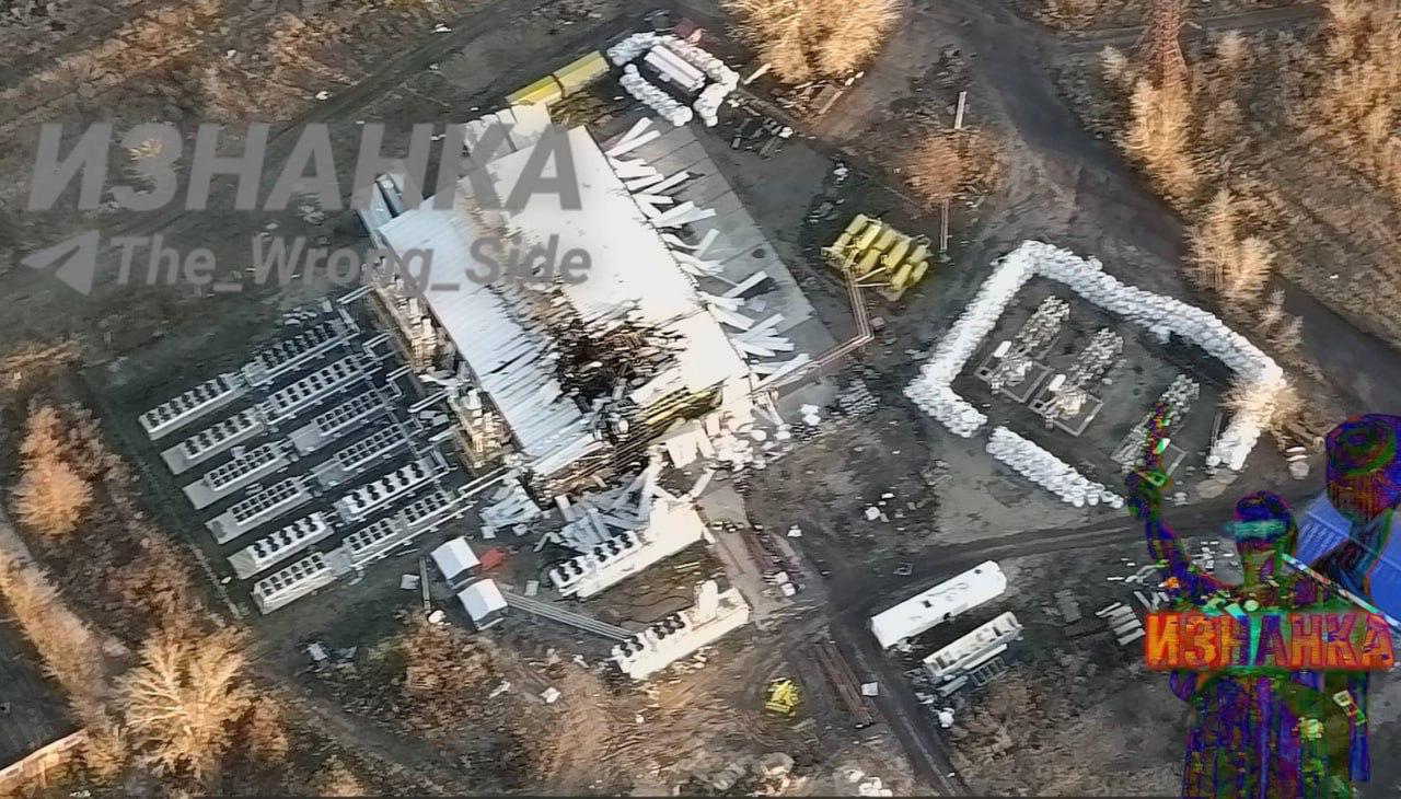 10.56 Последствия прилета по ТЭС в Чернигове. На фото видно, что два объекта были защищены мешками по периметру. Но прилетело по центральному объекту сверху.