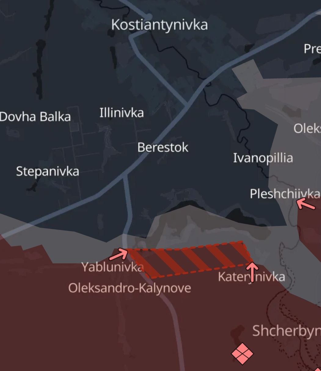8.17 Россияне продвинулись к югу от Константиновки, а также в Мирнограде, сообщает Deep State.