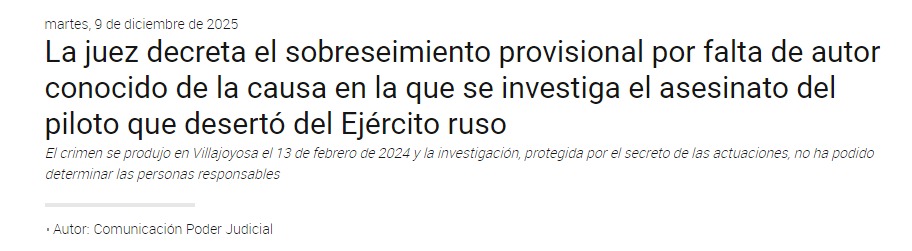 Суд в испанской Вильяхойосе временно прекратил расследование смерти пилота-перебежчика из России Максима Кузьминова, который в 2023 году угнал вертолет Ми-8 и перелетел на нем в Украину, а затем был найден мертвым в феврале 2024 года.