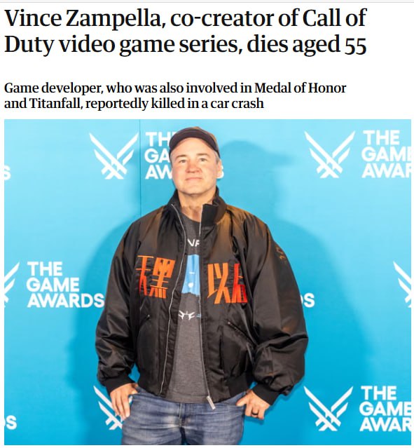 В Соединенных Штатах погиб разработчик видеоигр, один из создателей Call of Duty и глава студий Infinity Ward и Respawn Entertainment Винс Зампелла.