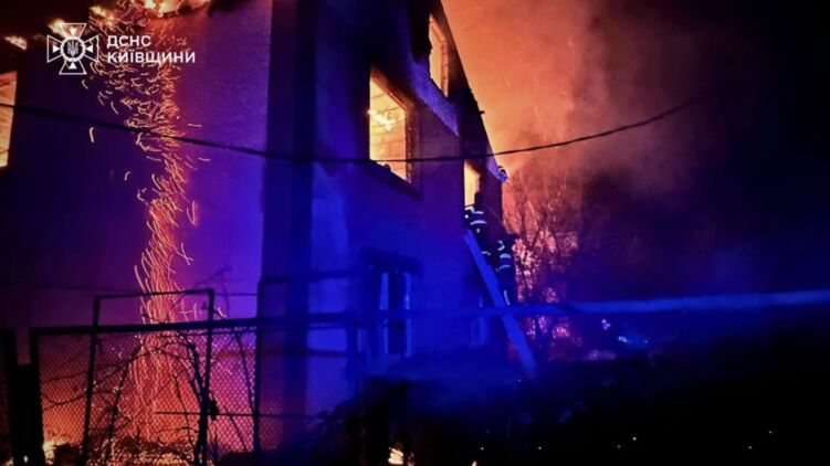 В Оболонском районе из-за атаки беспилотника загорелся трехэтажный частный жилой дом.