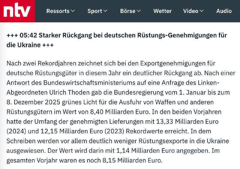 В 2025 году Германия резко сократила поставки своего оружия в Украину.