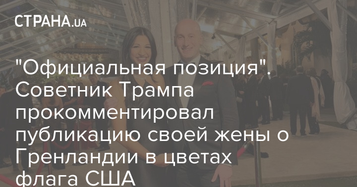Заместитель главы аппарата Белого дома по политике Стивен Миллер прокомментировал пост своей жены, где Гренландия была закрашена в цвета американского флага.