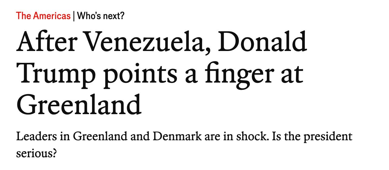Напомним, публикация Кэти Миллер о Гренландии появилась на фоне захвата президента Венесуэлы Николаса Мадуро и заявления президента США Дональда Трампа, что теперь этой страной будут управлять США.