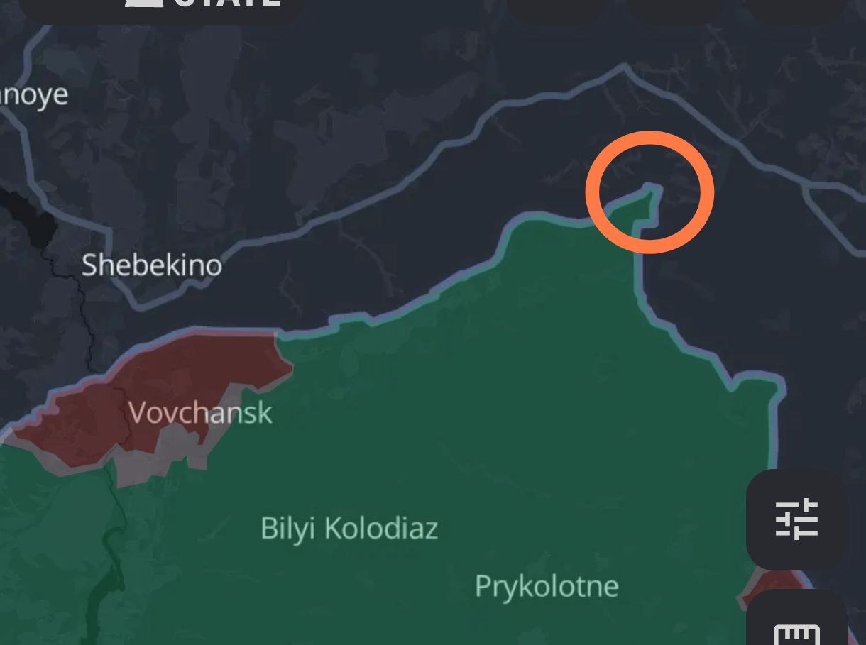 Деревня расположена северо-восточнее Волчанска. Украина её потери не подтверждала, на карте Deep State территория села обозначена под украинским контролем.