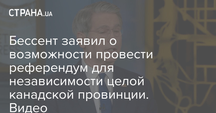 Министр финансов США Скотт Бессент заявил о возможном проведении референдума о независимости провинции Альберта в Канаде.