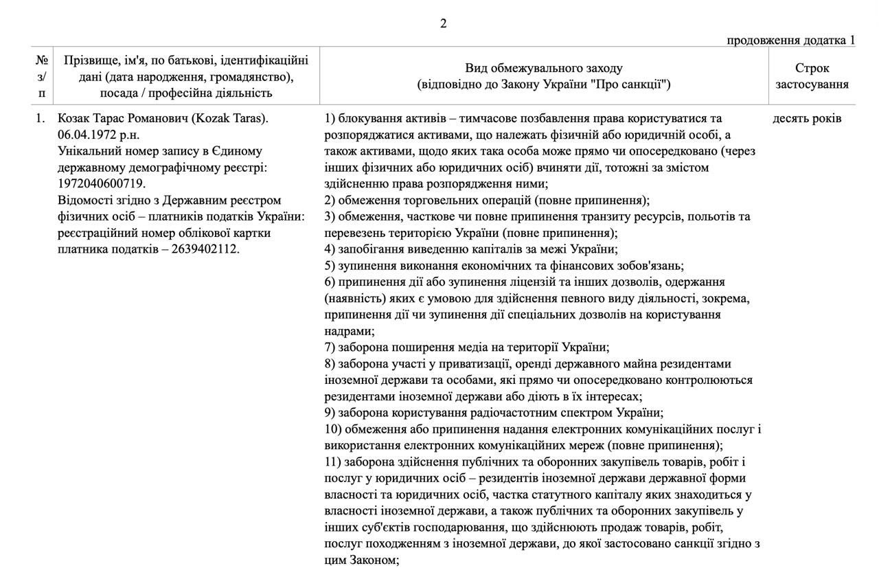 Кроме Фирташа Зеленский также продлил санкции против бывшего народного депутата Тараса Козака (соратника Виктора Медведчука).
