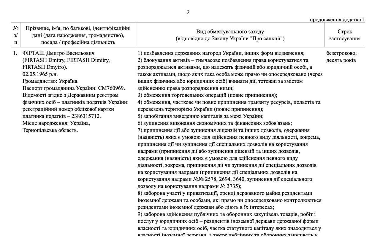 Отметим, что президент летом 2024 года уже продлевал санкции против Фирташа - причем сразу на десять лет, которые еще не истекли.
