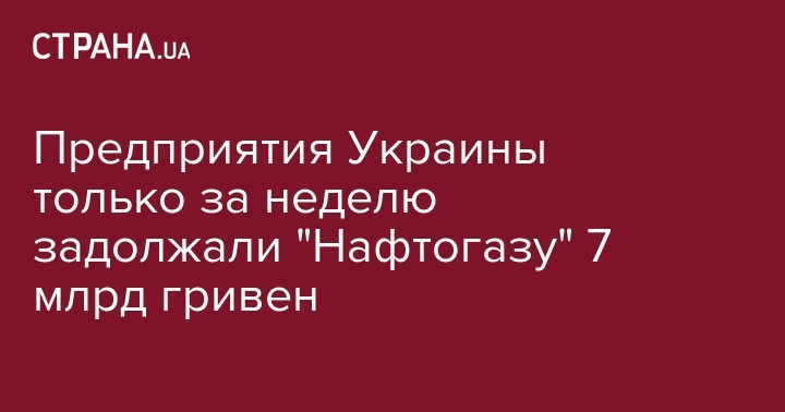 Предприятия Украины только за неделю задолжали "Нафтогазу" 7 млрд гривен