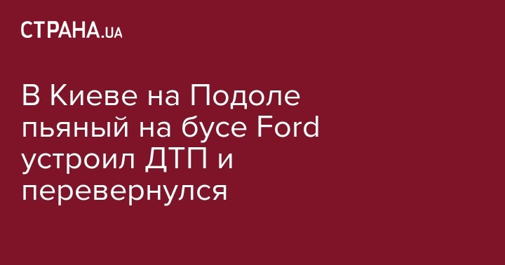 В Киеве на Подоле пьяный на бусе Ford устроил ДТП и перевернулся