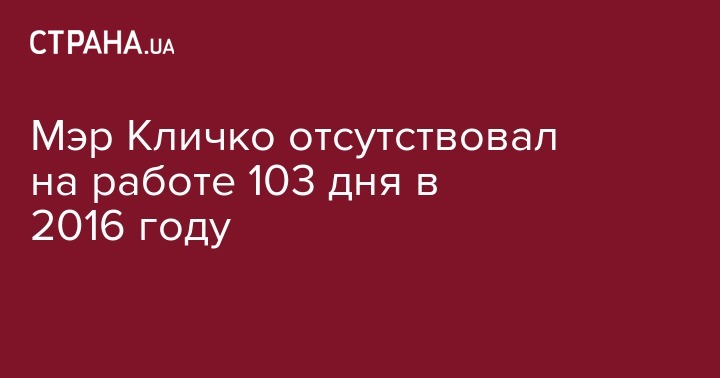 В общей в сложности, на своем рабочем месте в Киеве, Виталий Кличко отсутствовал 103 дня (всего в 2016 году было 252 рабочих дня).