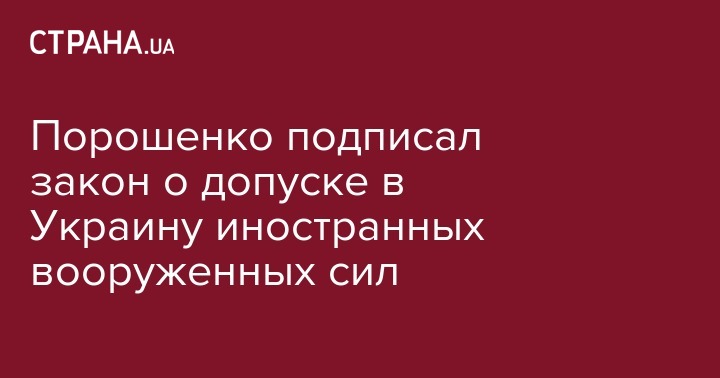 Президент Петр Порошенко подписал 26 января закон о допуске иностранных войск на территорию Украины. Об этом говорится в карточке законопроекта на сайте Верховной Рады.