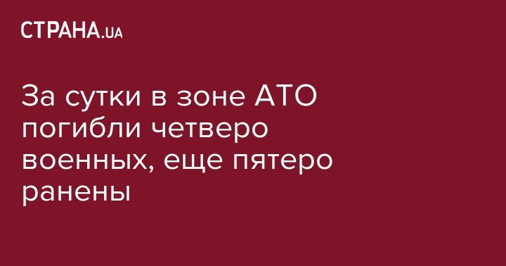 За день в зоне проведения антитеррористической операции погибли четверо украинских военнослужащих, пятеро получили ранения. Об этом сообщает пресс-центр штаба АТО на своей странице в Facebook.