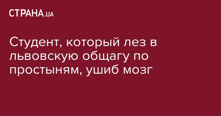 Залезавший по простыням в общежитие 20-летний студент одного из львовских колледжей сорвался и упал, примерно, с высоты четвертого этажа. Он был госпитализирован машиной скорой помощи в тяжелом состоянии.
