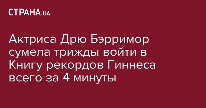 Актриса Дрю Бэрримор трижды вошла в Книгу рекордов Гиннеса в течение четырех минут.