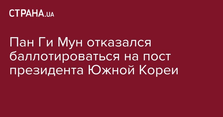 Экс-генсек ООН Пан Ги Мун заявил, что не будет претендовать на пост президента Южной Кореи. Об этом сообщает "Интерфакс" со ссылкой на местные СМИ.