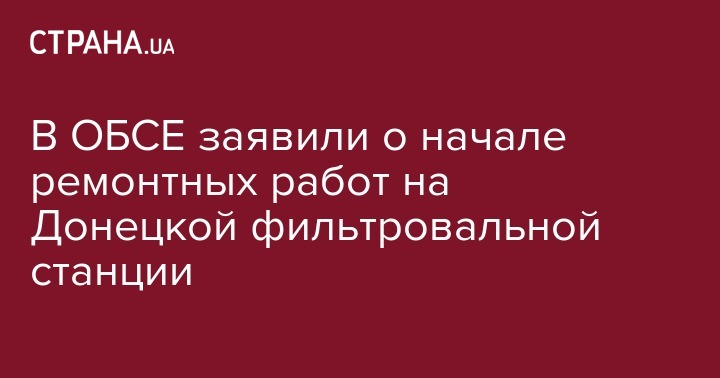В ОБСЕ заявили о начале ремонтных работ на Донецкой фильтровальной станции