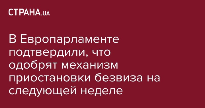 В Европарламенте подтвердили, что одобрят механизм приостановки безвиза на следующей неделе