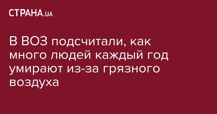 Загрязнение воздуха является причиной смерти около 3 миллионов ежегодно или каждой девятой смерти в мире. Также он уже спровоцировал крупнейший кризис в области здравоохранения и окружающей среды в истории человечества.