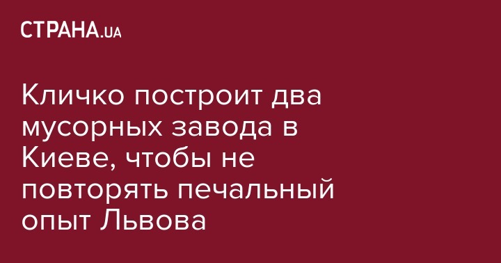 Кличко построит два мусорных завода в Киеве, чтобы не повторять печальный опыт Львова