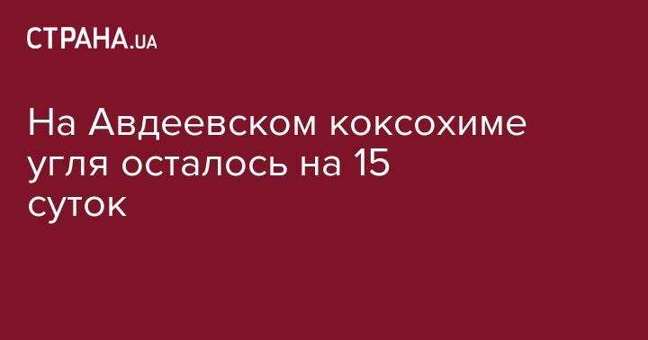 Директор Авдеевского коксохимического завода Муса Магомедов заявил, что из-за блокады Донбасса запасов угля на предприятии осталось только на 15 суток работы. Об этом сообщает "112 Украина".