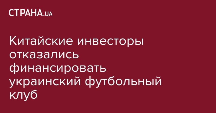Китайские инвесторы отказались финансировать украинский футбольный клуб