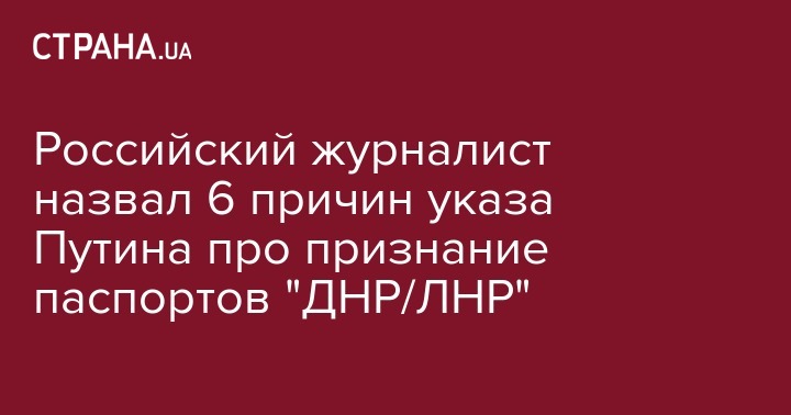 Российский журналист назвал 6 причин указа Путина про признание паспортов "ДНР/ЛНР"
