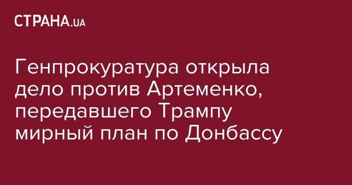 Генпрокуратура открыла дело против Артеменко, передавшего Трампу мирный план по Донбассу
