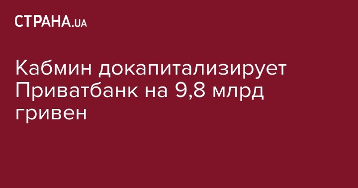 Кабинет министров Украины поручил Министерству финансов осуществить выпуск индексированных облигаций внутреннего государственного займа (ОВГЗ) на 9,8 млрд грн для завершения докапитализации национализированного в конце 2016 года ПриватБанка (Днепр), сообщается на веб-сайте правительства.