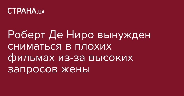 Роберт Де Ниро вынужден сниматься в плохих фильмах из-за высоких запросов жены