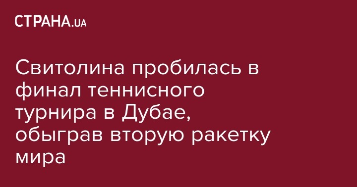 Напомним, ранее украинская чемпионка пробилась в полуфинал престижного теннисного турнира в Дубае, обыграв Лорен Дэвис из США.