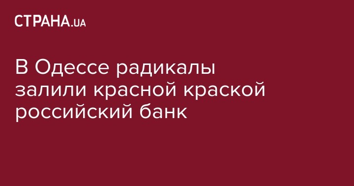 Члены добровольческого батальона "Азов" в Одессе облили краской российский банк. Об этом сообщает Одесса-медиа.