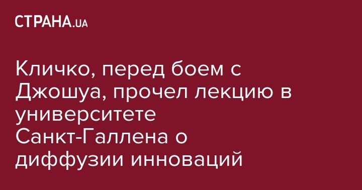 Кличко, перед боем с Джошуа, прочел лекцию в университете Санкт-Галлена о диффузии инноваций